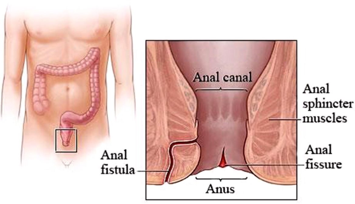 This is an infected cavity filled with pus near the anus or rectum. An anal fistula also known as fistula-in-ano is a small tunnel that tracks from an opening inside the anal canal to an outside opening in the skin near the anus. An anal fistula may be the results from a previous or current anal abscess or fistula can also occur without an abscess.